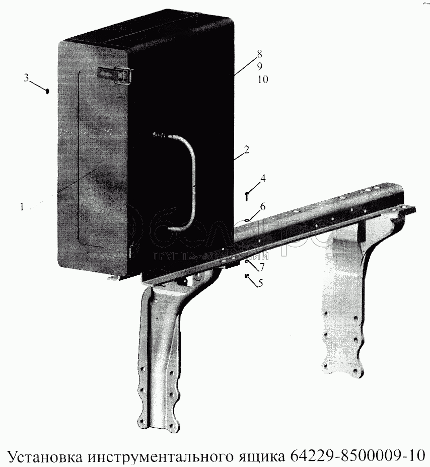 Каталог запасных частей к технике: МАЗ-5516А5. Установка инструментального ящика 64229-8500009-10