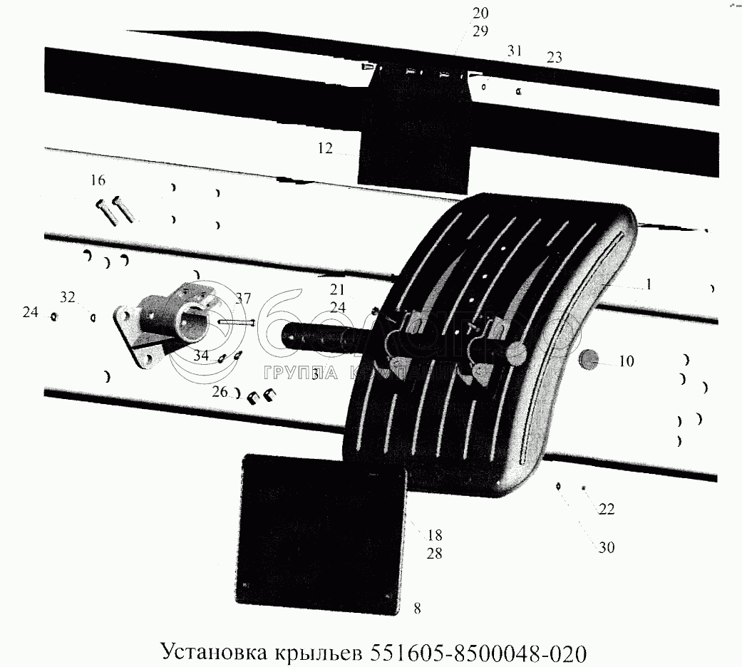 Каталог запасных частей к технике: МАЗ-5516А5. Установка крыльев 551605-8500048-020
