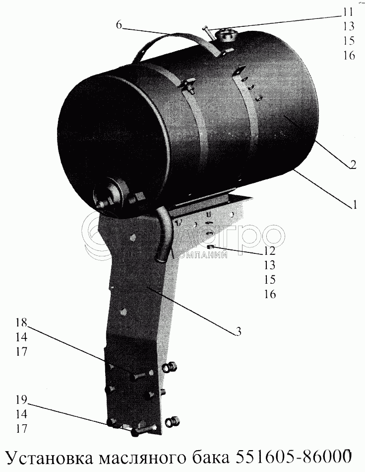 Каталог запасных частей к технике: МАЗ-5516А5. Установка масляного бака 551605-8600034-025