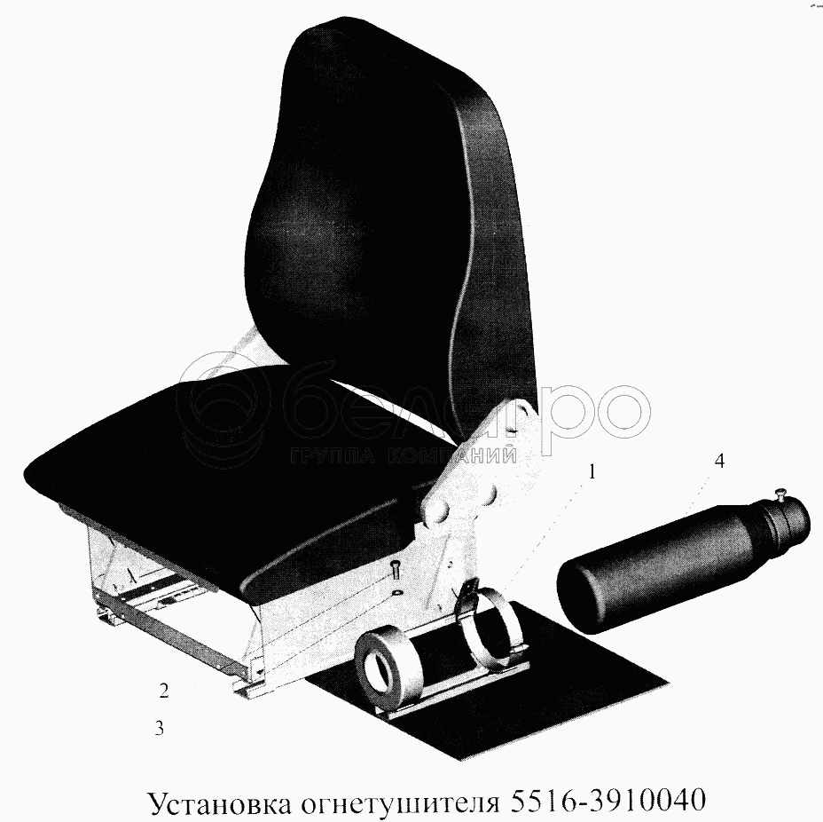 Каталог запасных частей к технике: МАЗ-5516А5. Установка огнетушителя 5516-3910040