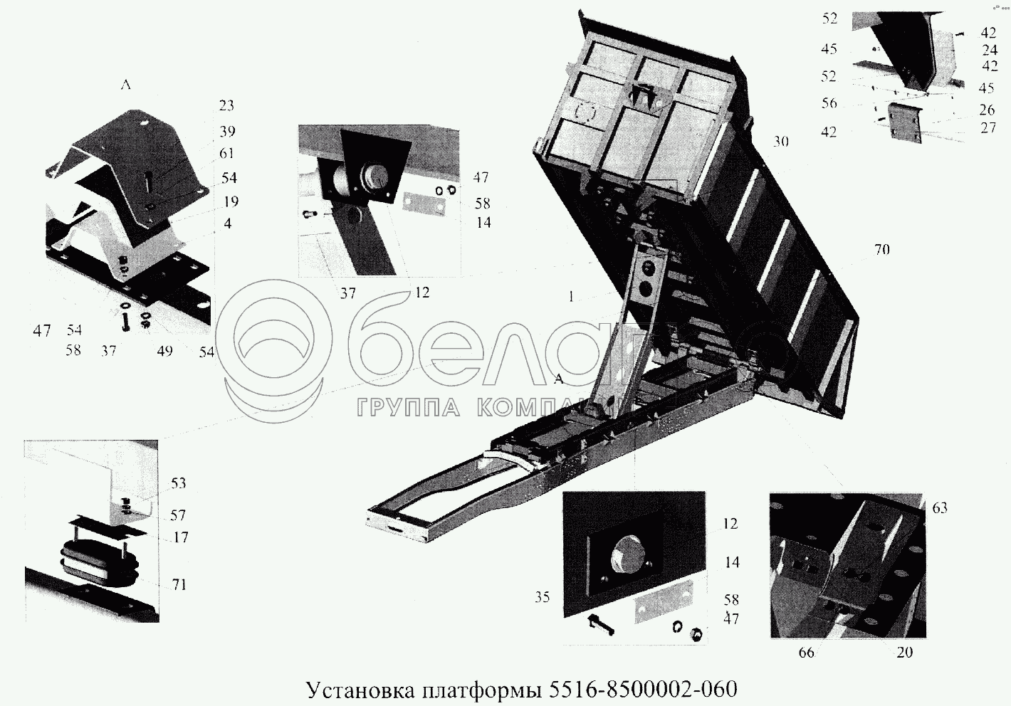 Каталог запасных частей к технике: МАЗ-5516А5. Установка платформы 5516-8500002-060