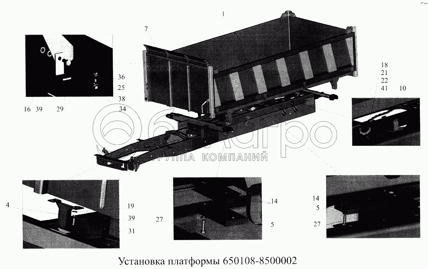 Каталог запасных частей к технике: МАЗ-5516А5. Установка платформы 650108-8500007 (-001)