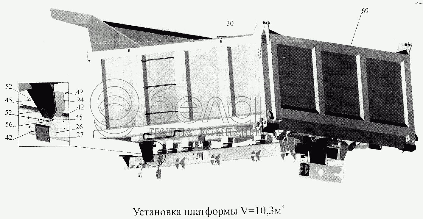 Каталог запасных частей к технике: МАЗ-5516А5. Установка платформы V=10.3 м3