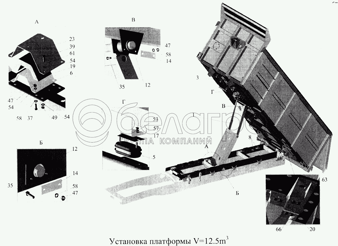 Каталог запасных частей к технике: МАЗ-5516А5. Установка платформы V=17.5 м3