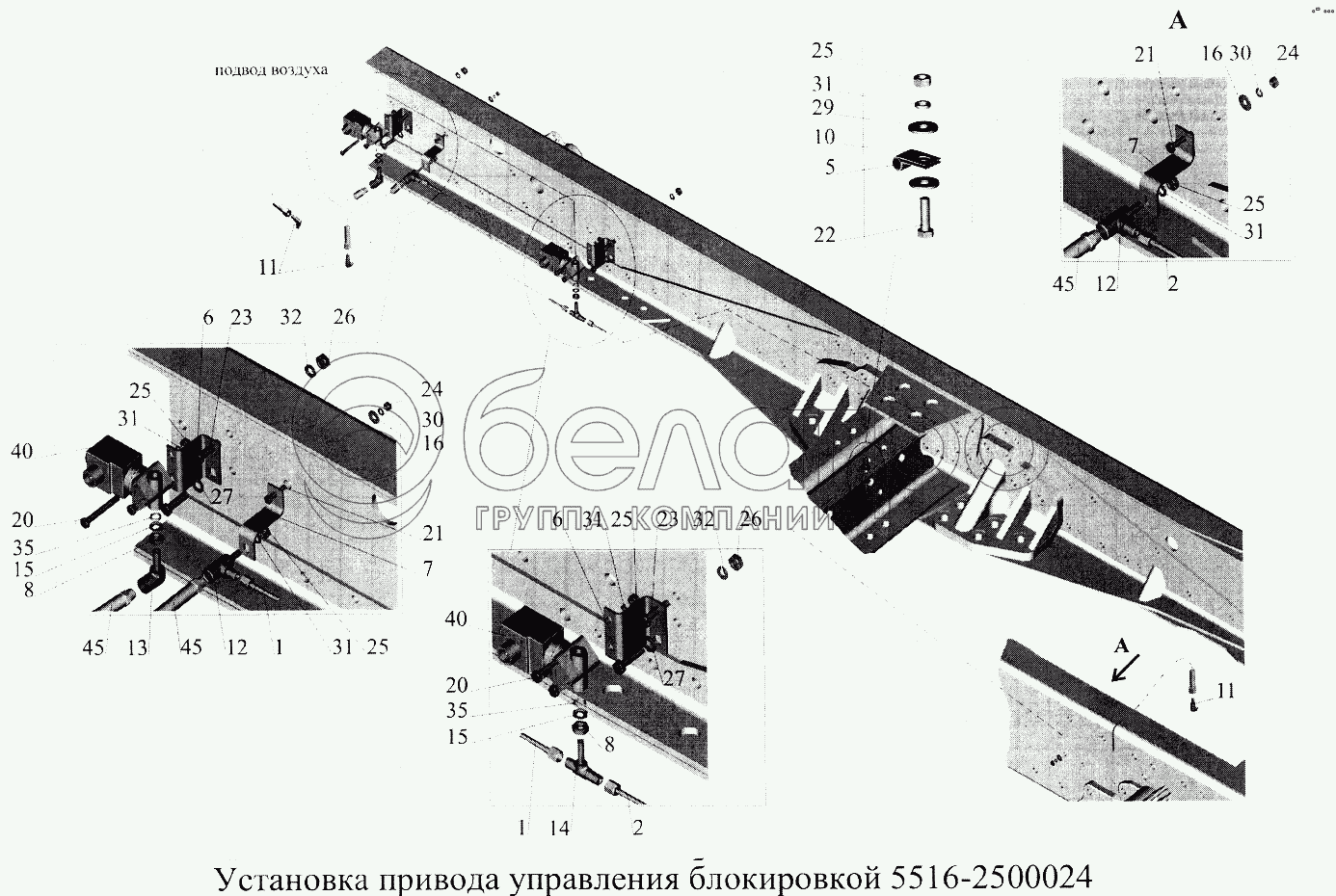 Каталог запасных частей к технике: МАЗ-5516А5. Установка привода управления блокировкой 5516-2500024