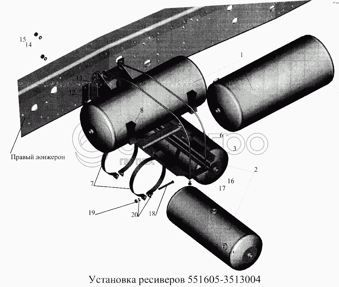 Каталог запасных частей к технике: МАЗ-5516А5. Установка ресиверов 551605-3513004