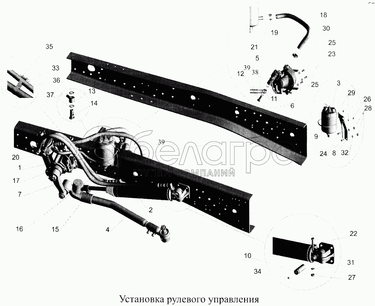 Каталог запасных частей к технике: МАЗ-5516А5. Установка рулевого управления