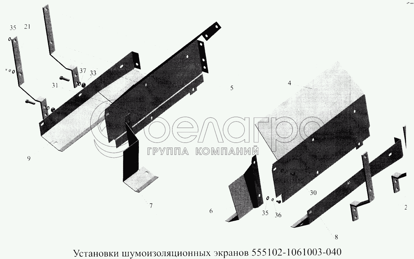 Каталог запасных частей к технике: МАЗ-5516А5. Установка шумоизоляционных экранов 555102-1061003-040