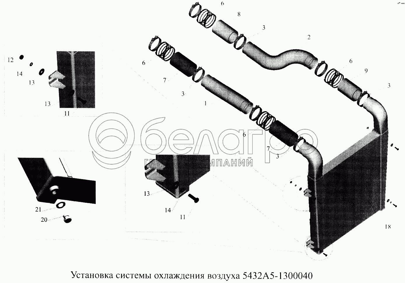 Каталог запасных частей к технике: МАЗ-5516А5. Установка системы охлаждения воздуха 5432А5-1300040