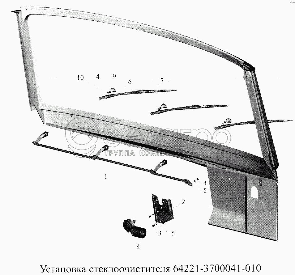 Каталог запасных частей к технике: МАЗ-5516А5. Установка стеклоочистителя 64271 -3700041-010