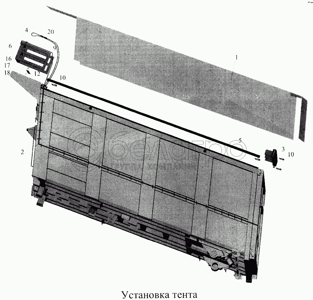 Каталог запасных частей к технике: МАЗ-5516А5. Установка тента
