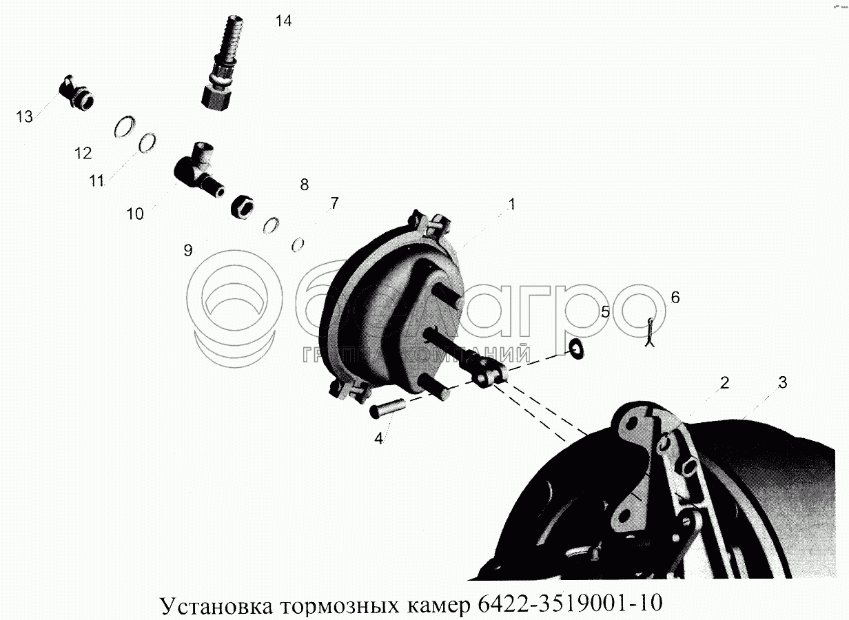 Каталог запасных частей к технике: МАЗ-5516А5. Установка тормозных камер 6422-3519001-10