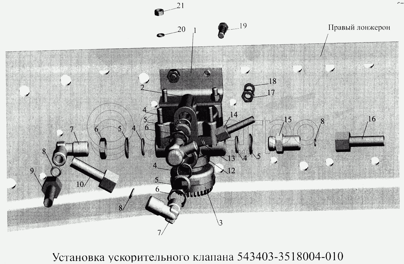 Каталог запасных частей к технике: МАЗ-5516А5. Установка ускорительного клапана 543403-3518004-010
