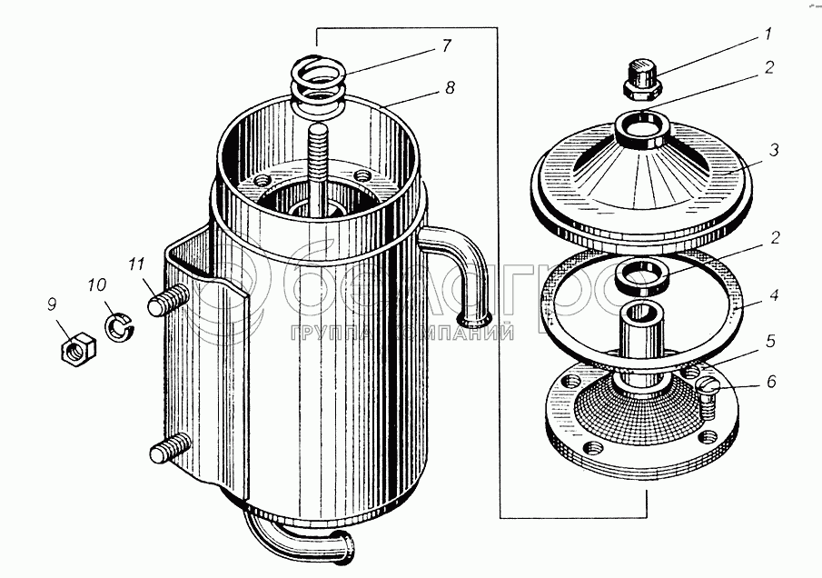 Каталог запасных частей к технике: МАЗ-5549. Бачок насоса гидроусилителя рулевого управления