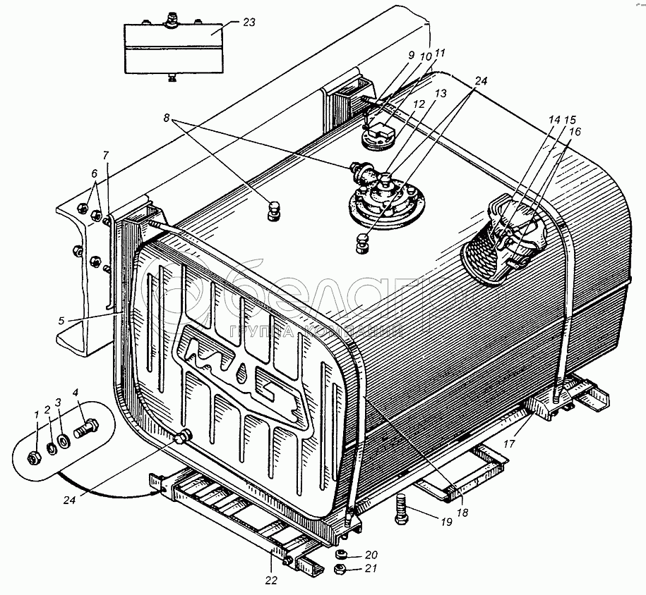 Каталог запасных частей к технике: МАЗ-5549. Бак топливный и его установка МАЗ-509А