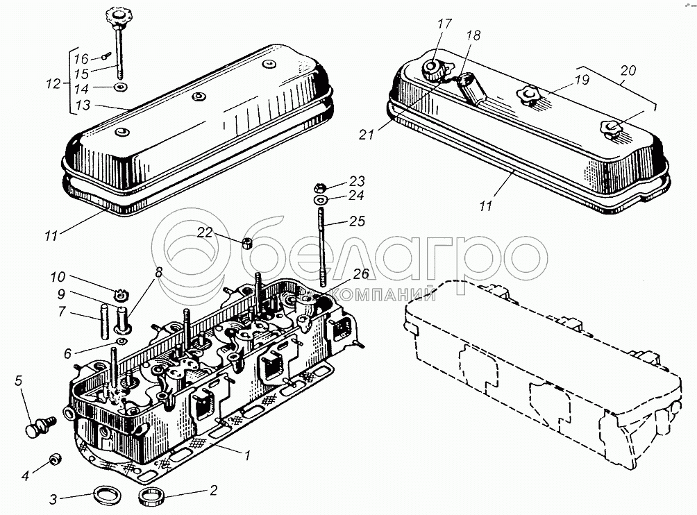 Каталог запасных частей к технике: МАЗ-5549. Головка блока цилиндров