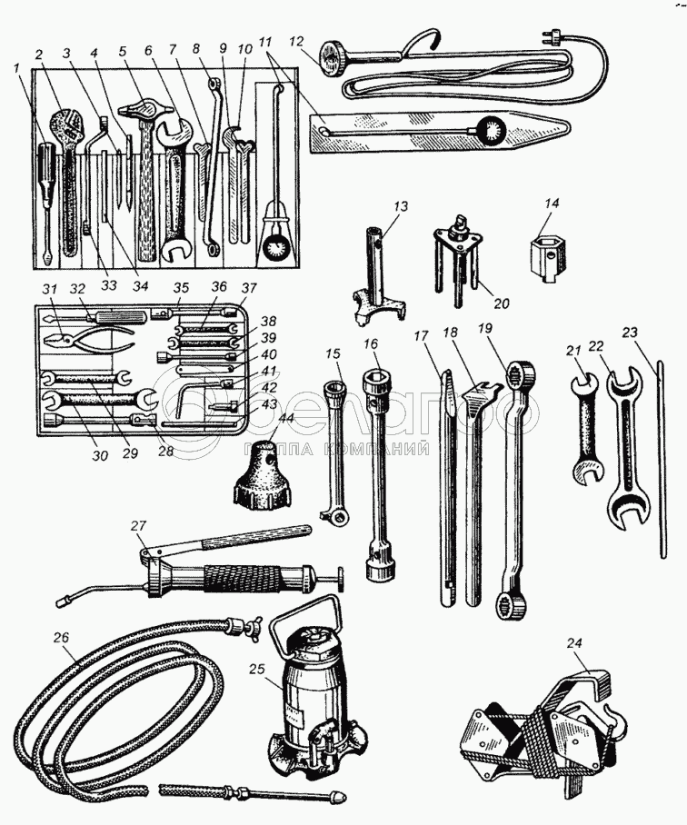 Каталог запасных частей к технике: МАЗ-5549. Инструмент и принадлежности