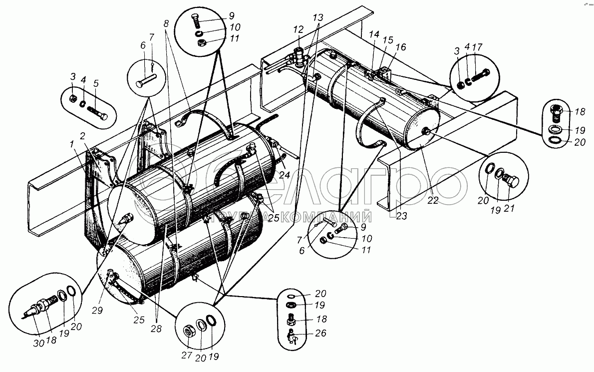 Каталог запасных частей к технике: МАЗ-5549. Крепление воздушных баллонов МАЗ-5429, МАЗ-504В