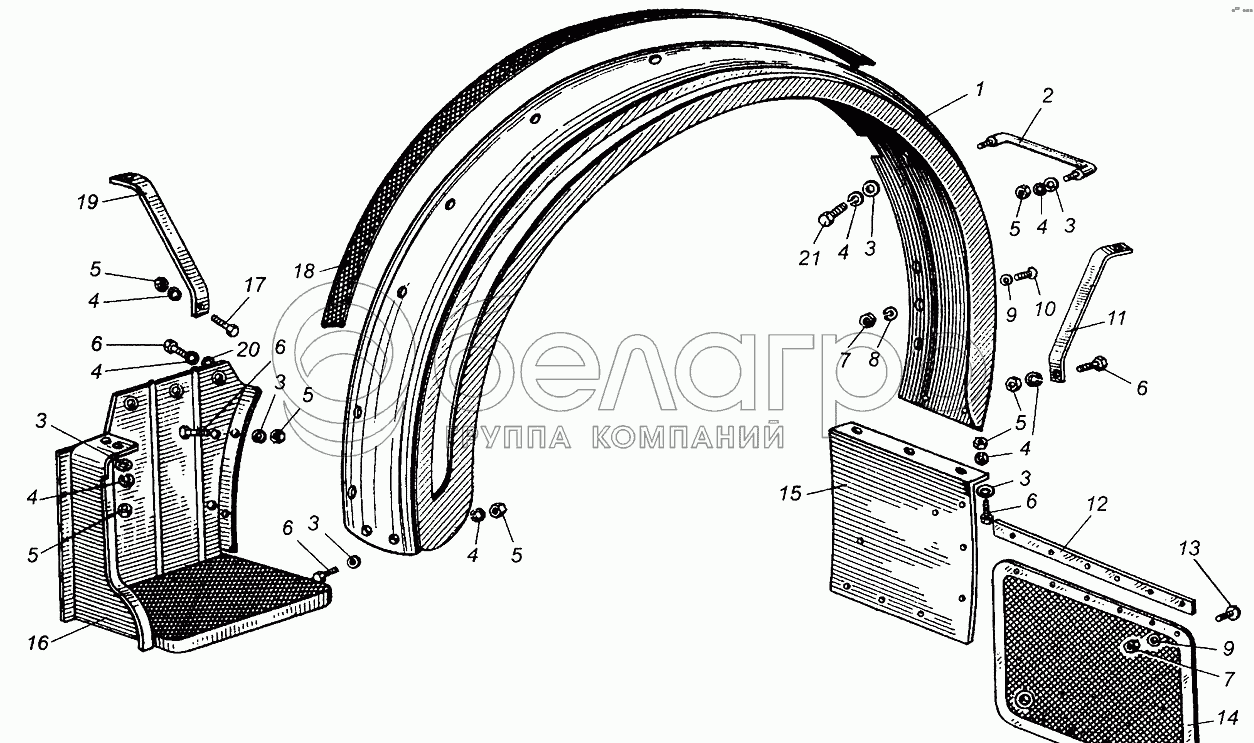 Каталог запасных частей к технике: МАЗ-5549. Крыло переднее и подножка