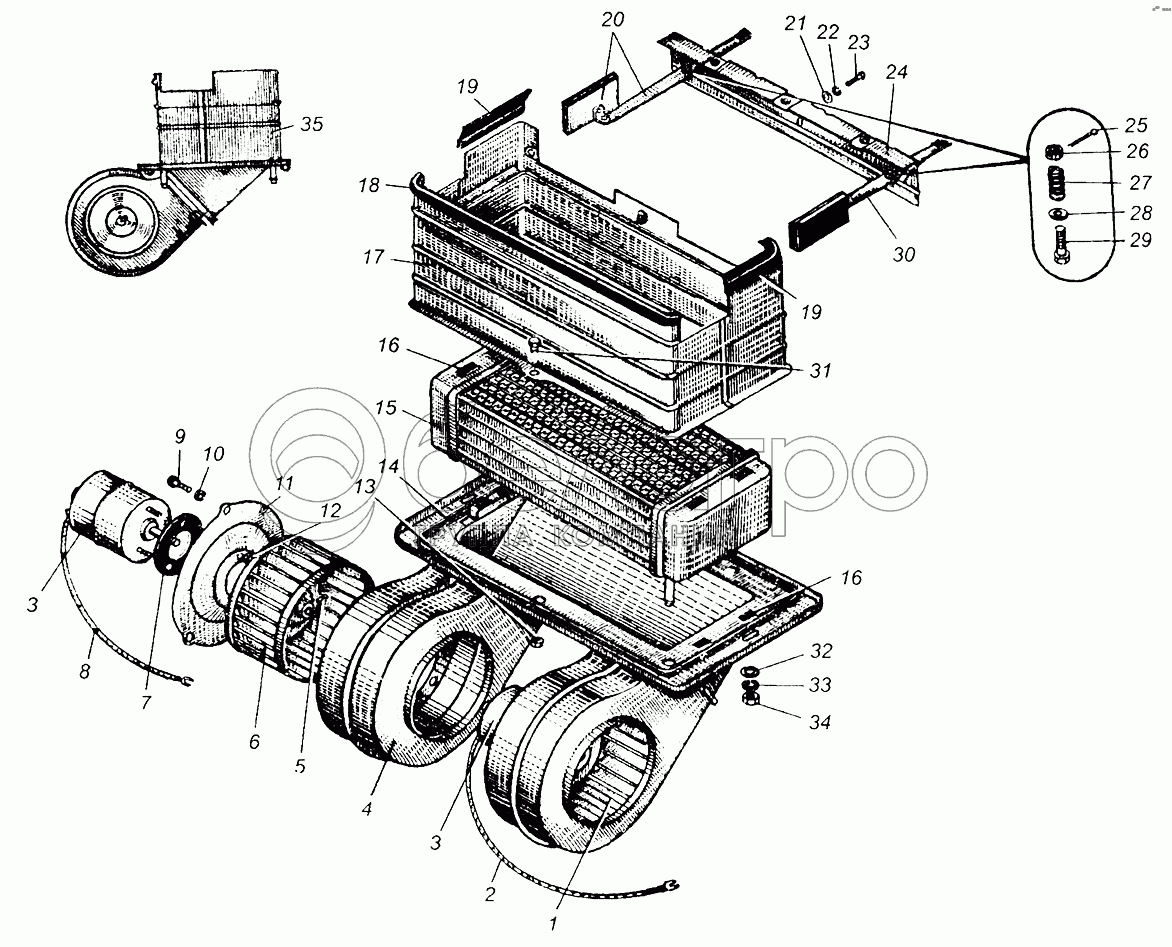 Каталог запасных частей к технике: МАЗ-5549. Отопитель кабины МАЗ-504В
