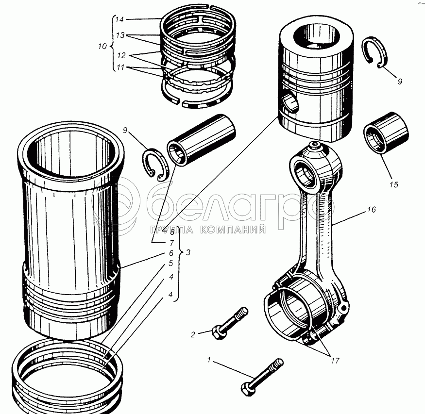 Каталог запасных частей к технике: МАЗ-5549. Поршень и шатун