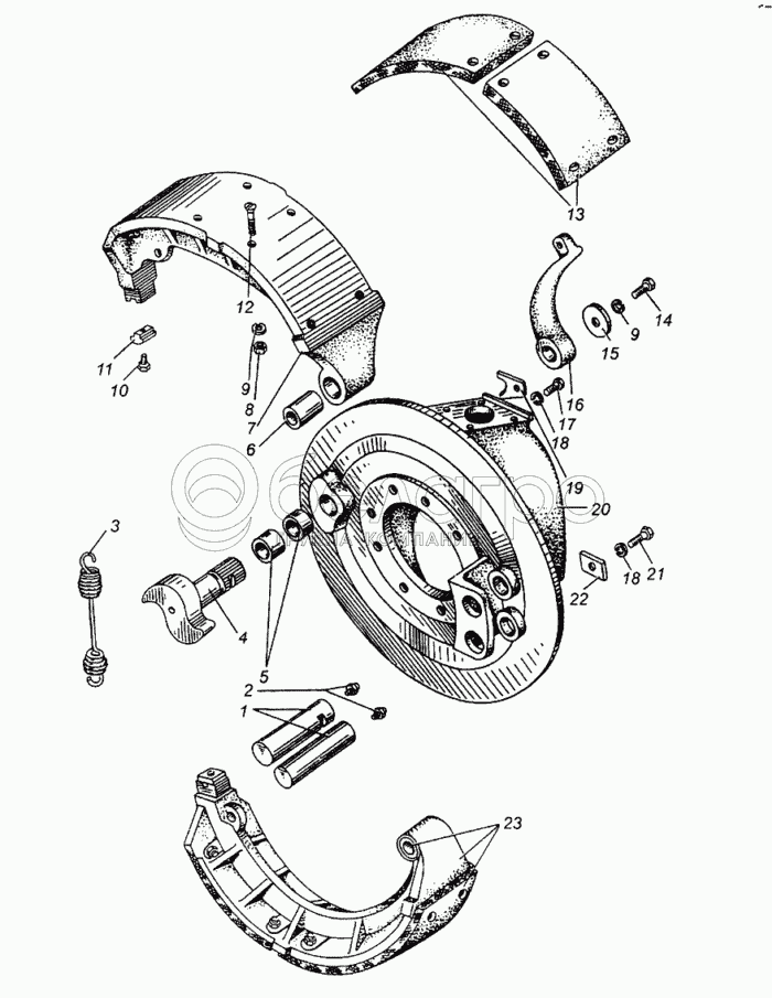 Каталог запасных частей к технике: МАЗ-5549. Тормоз рабочий передний МАЗ-509А