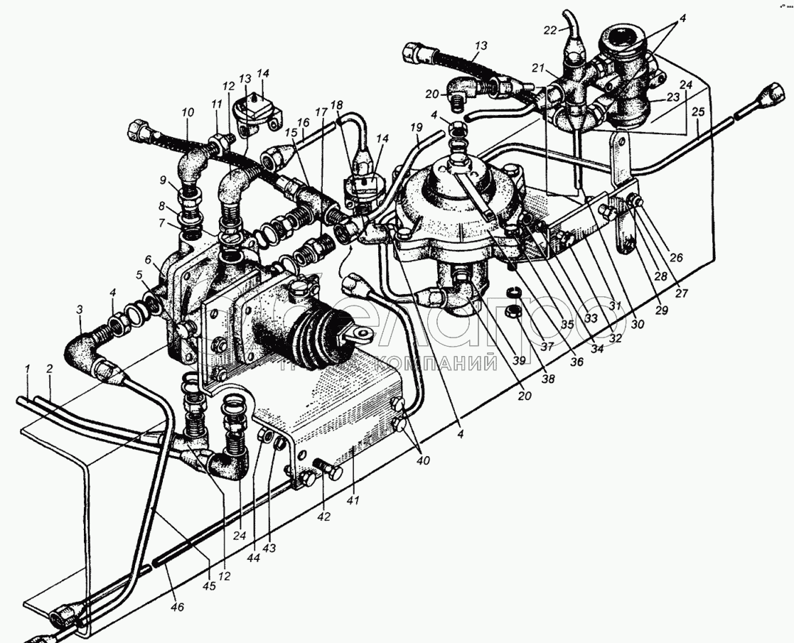 Каталог запасных частей к технике: МАЗ-5549. Трубопроводы к тормозным кранам МАЗ-5335