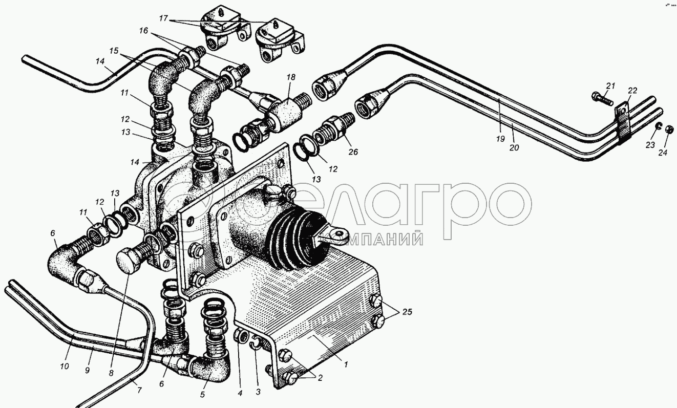 Каталог запасных частей к технике: МАЗ-5549. Трубопроводы к тормозным кранам МАЗ-5549