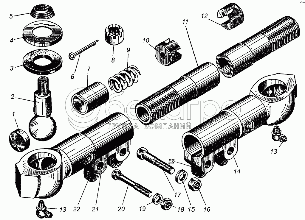 Каталог запасных частей к технике: МАЗ-5549. Тяга поперечная рулевая