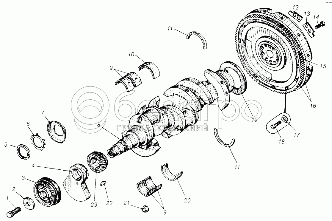 Вал коленчатый с шестерней и маслоотражателями в сборе (на двигатель ставится один из данных коленчатых валов)