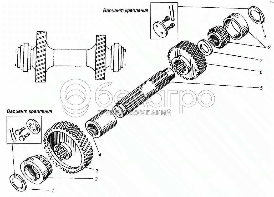 Каталог запасных частей к технике: МАЗ-5549. Вал промежуточный раздаточной коробки МАЗ-509А