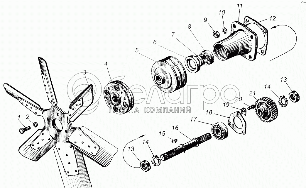 Каталог запасных частей к технике: МАЗ-5549. Вентилятор