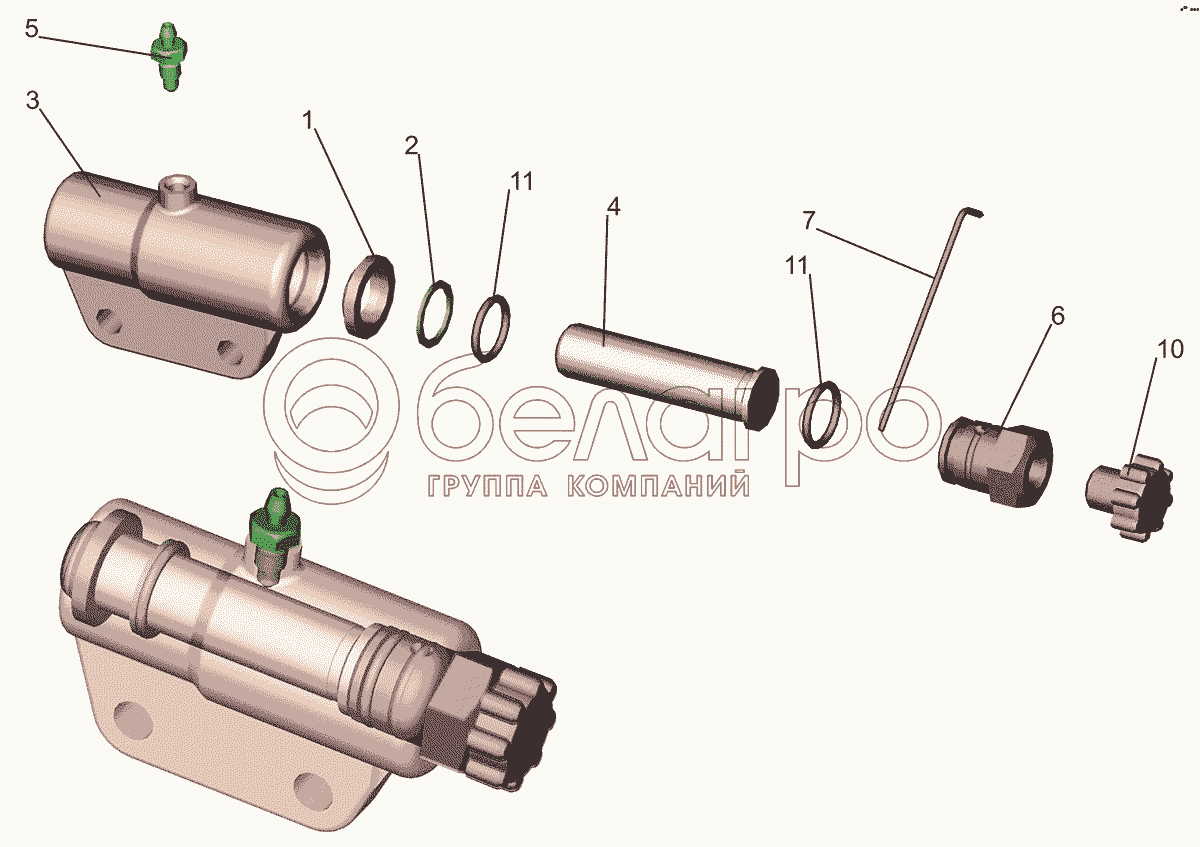 Каталог запасных частей к технике: МАЗ-5550V3 (V5). Гидроцилиндр замка кабины 6430-5003100