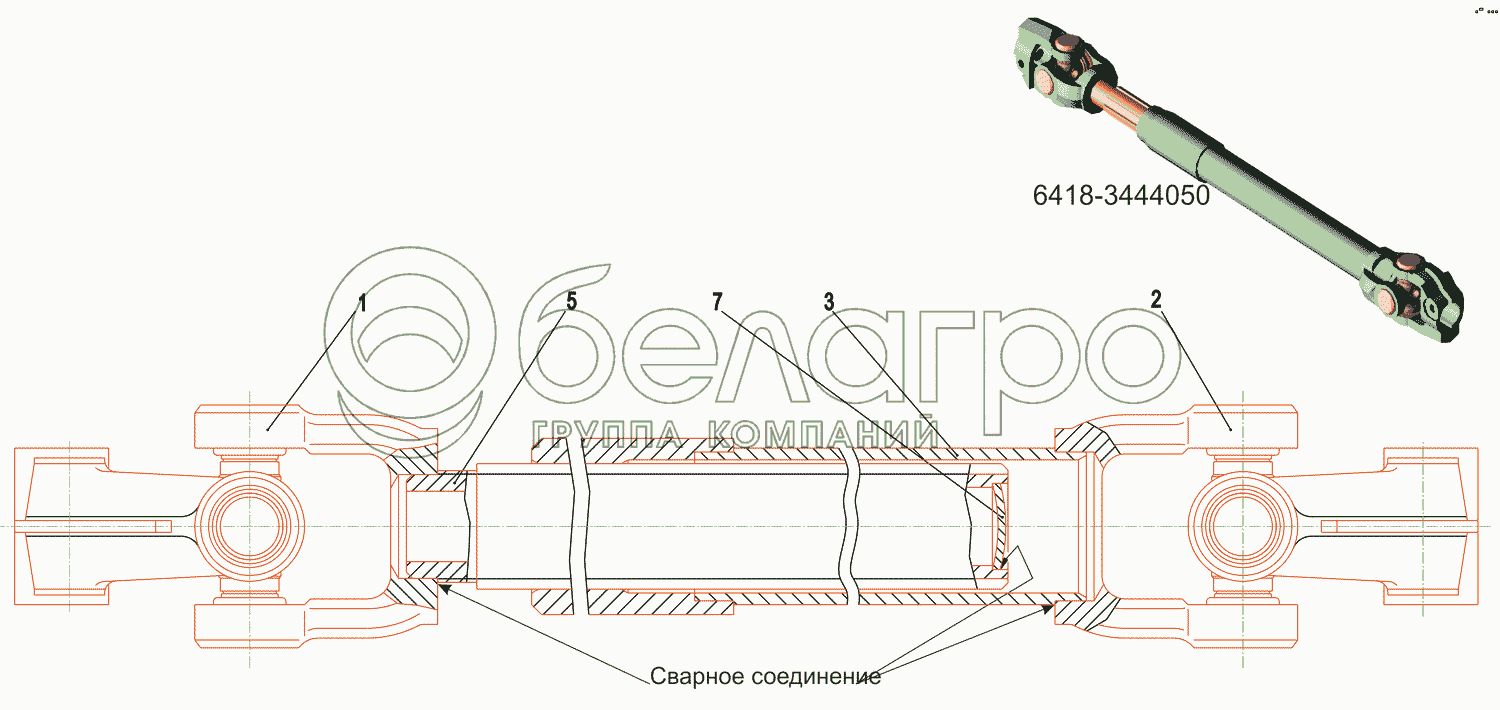 Каталог запасных частей к технике: МАЗ-5550V3 (V5). Кардан нижний 6418-3444050