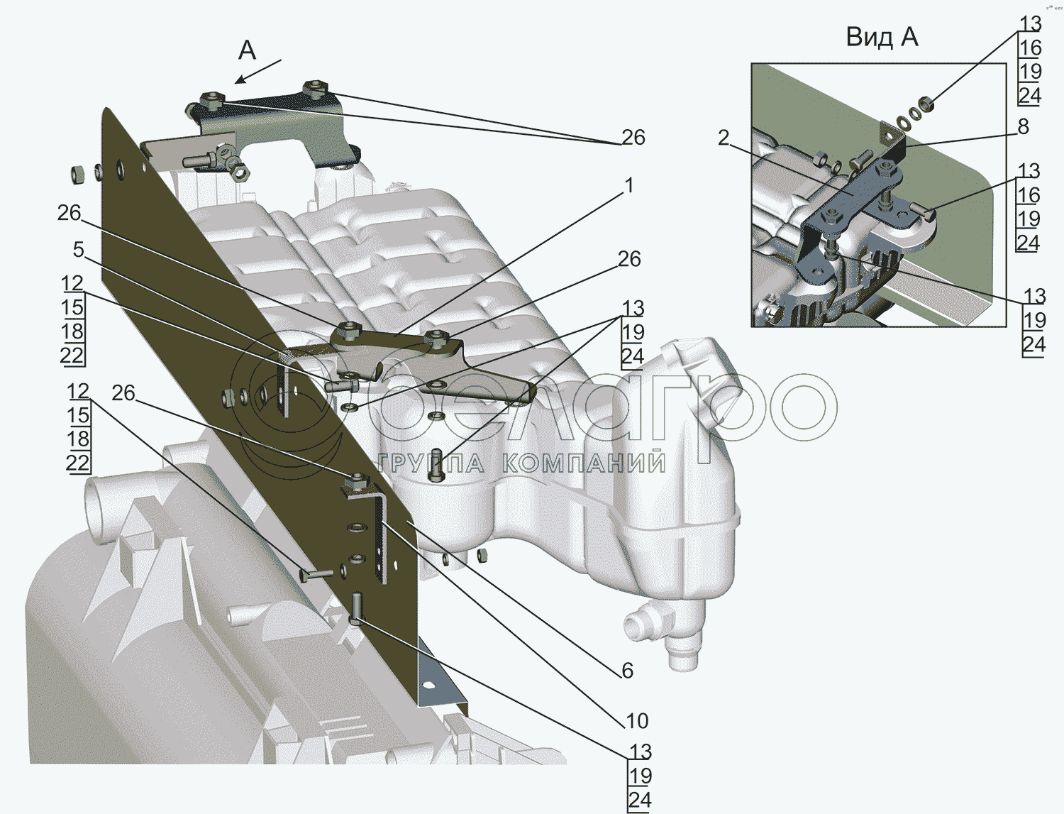 Каталог запасных частей к технике: МАЗ-5550V3 (V5). Крепление расширительного бачка 5340V4-1300014-000