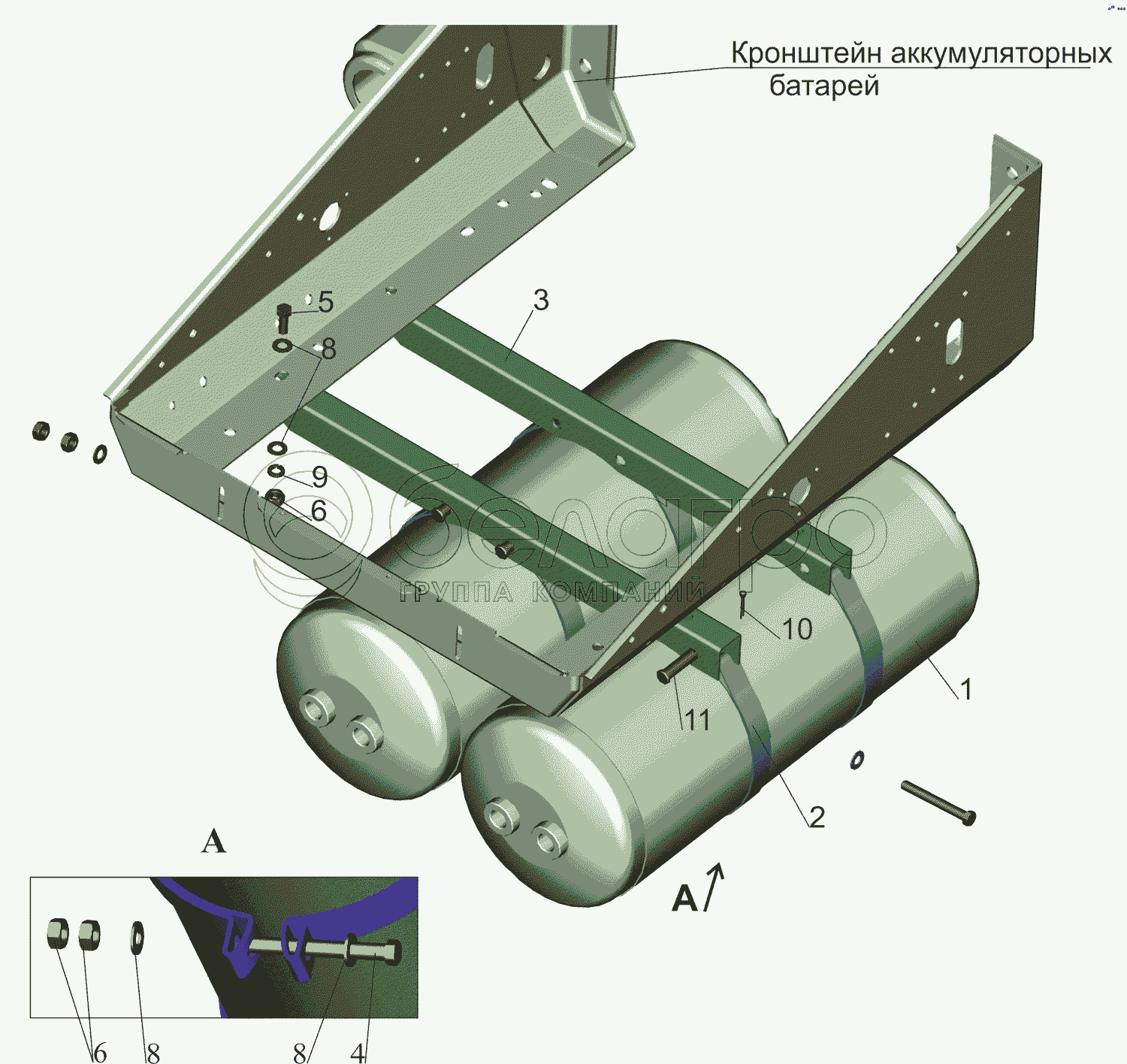 Каталог запасных частей к технике: МАЗ-5550V3 (V5). Крепление ресиверов 534003-3513004