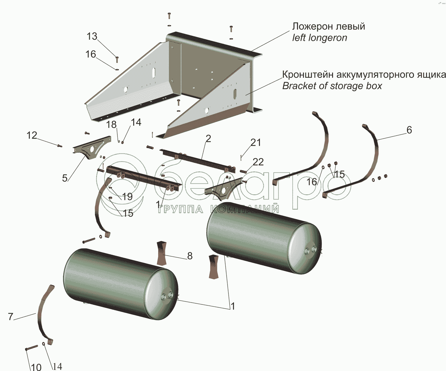 Каталог запасных частей к технике: МАЗ-5550V3 (V5). Крепление ресиверов 5550V3-3513004-000