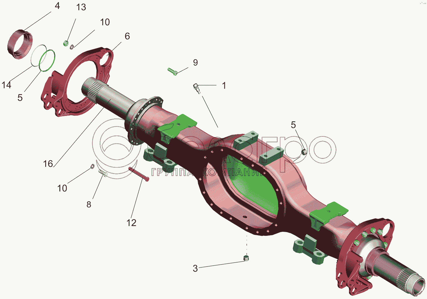 Каталог запасных частей к технике: МАЗ-5550V3 (V5). Мост задний. Картер моста