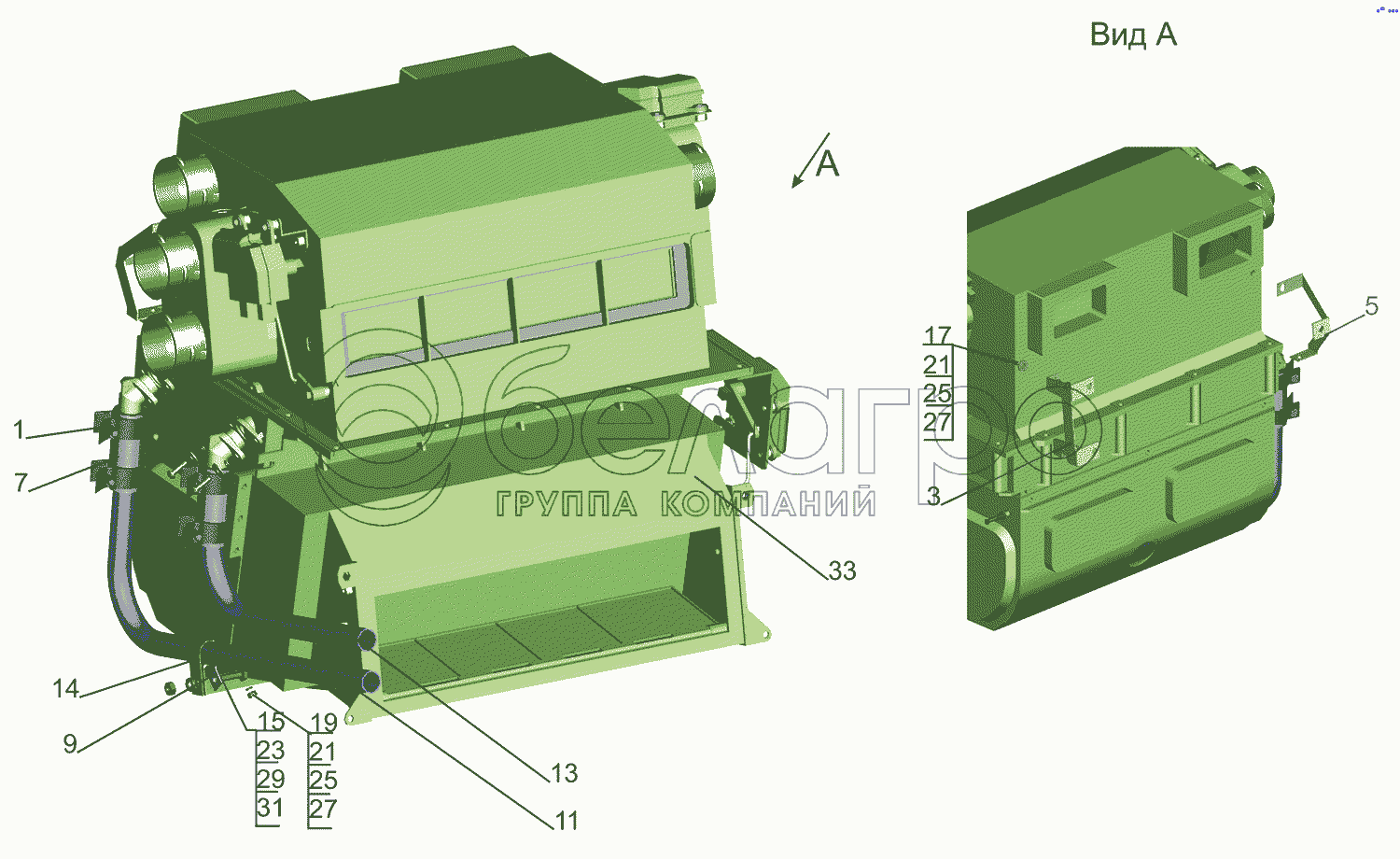 Каталог запасных частей к технике: МАЗ-5550V3 (V5). Отопитель 631019-8101010-010