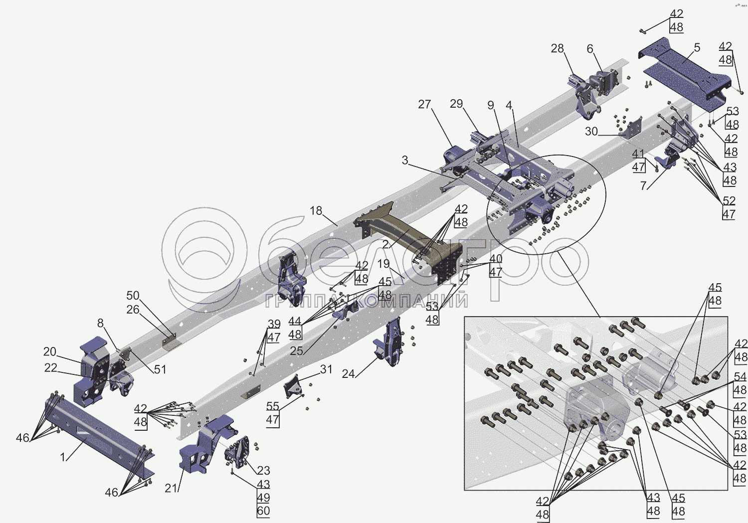 Каталог запасных частей к технике: МАЗ-5550V3 (V5). Рама 5550V5-2801002-000