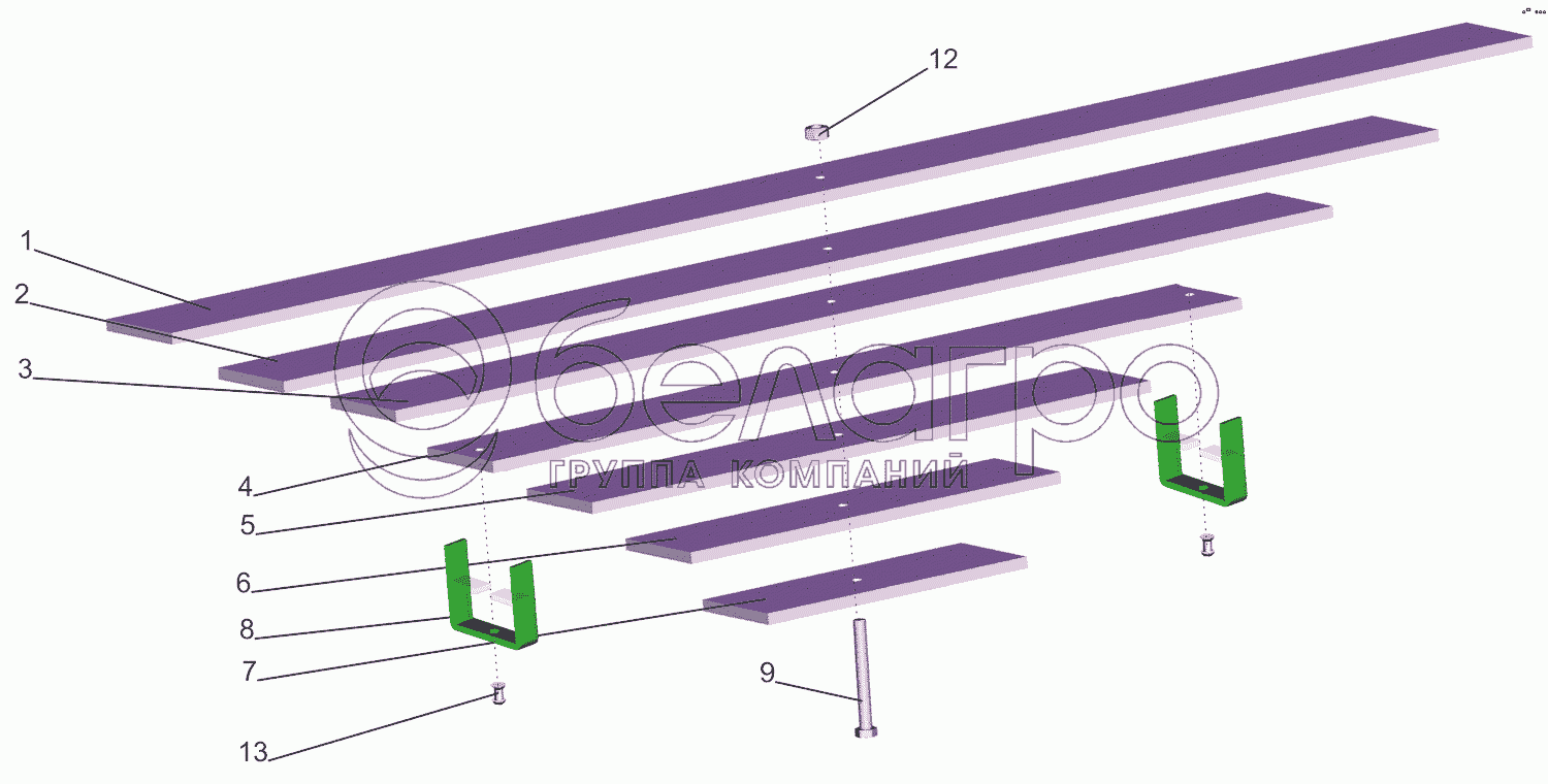 Каталог запасных частей к технике: МАЗ-5550V3 (V5). Рессора дополнительная 5440-2913012-010