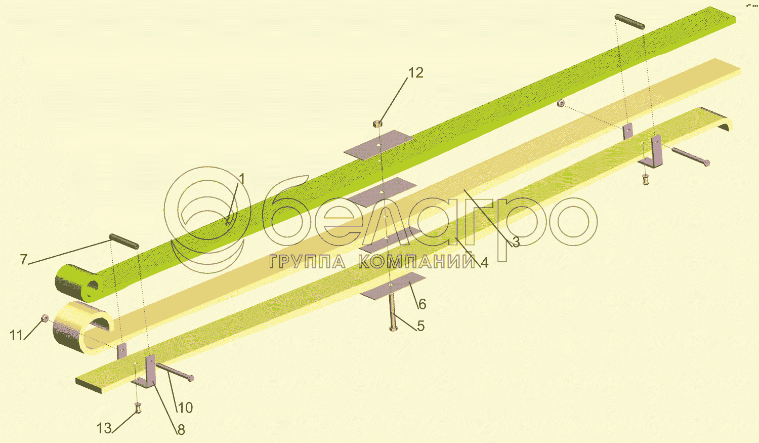 Каталог запасных частей к технике: МАЗ-5550V3 (V5). Рессора передняя 6430-2902012-10