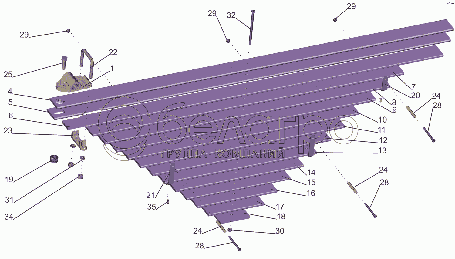 Каталог запасных частей к технике: МАЗ-5550V3 (V5). Рессора задняя 509-2912012-13