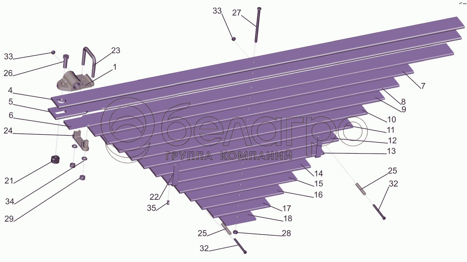 Каталог запасных частей к технике: МАЗ-5550V3 (V5). Рессора задняя 5550-2912012-010