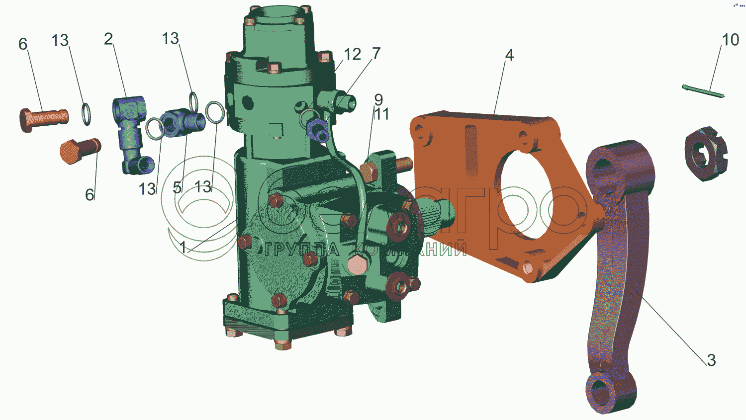 Каталог запасных частей к технике: МАЗ-5550V3 (V5). Рулевой механизм с кронштейном 6418-3400006