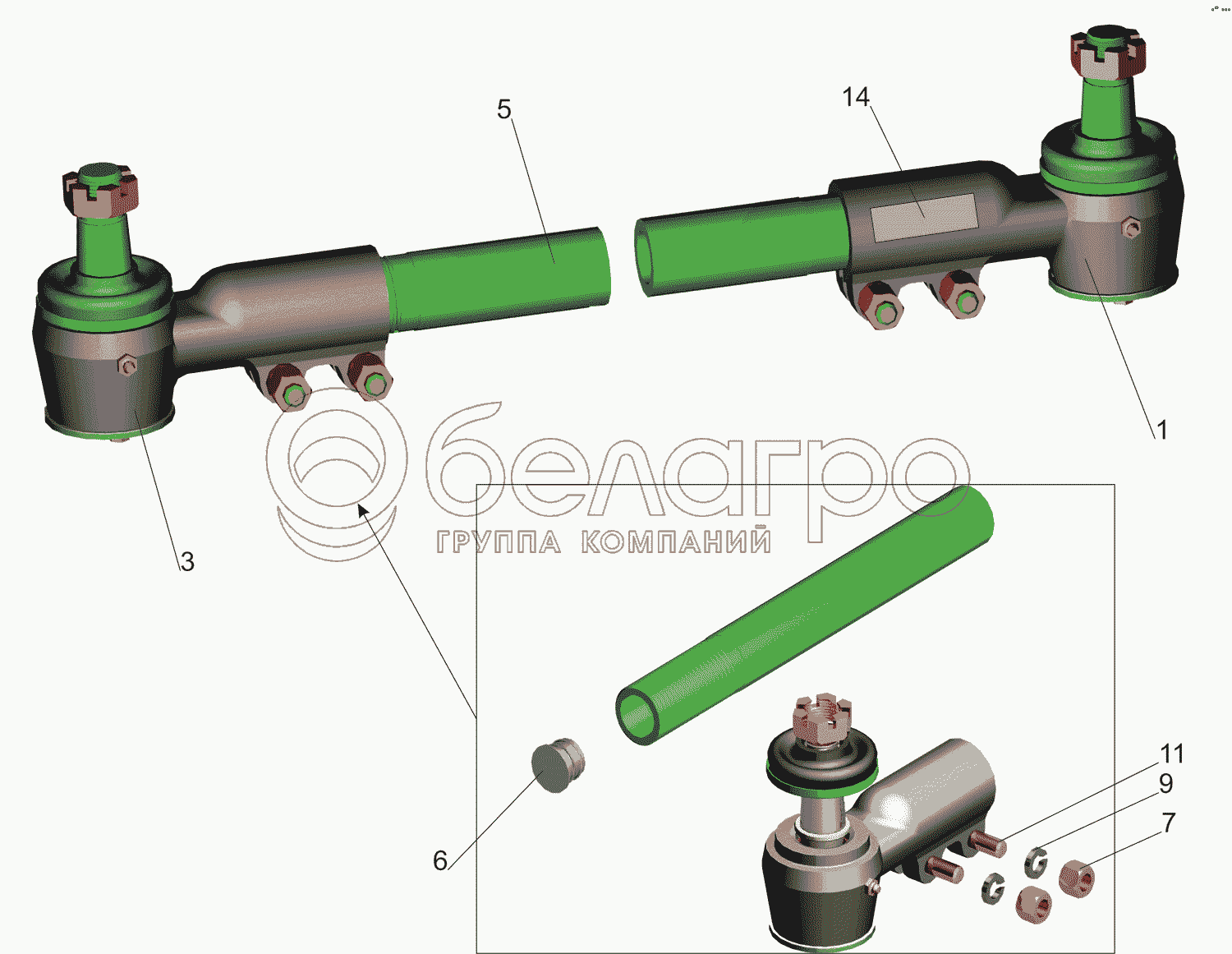 Каталог запасных частей к технике: МАЗ-5550V3 (V5). Тяга поперечная 64221-3003052