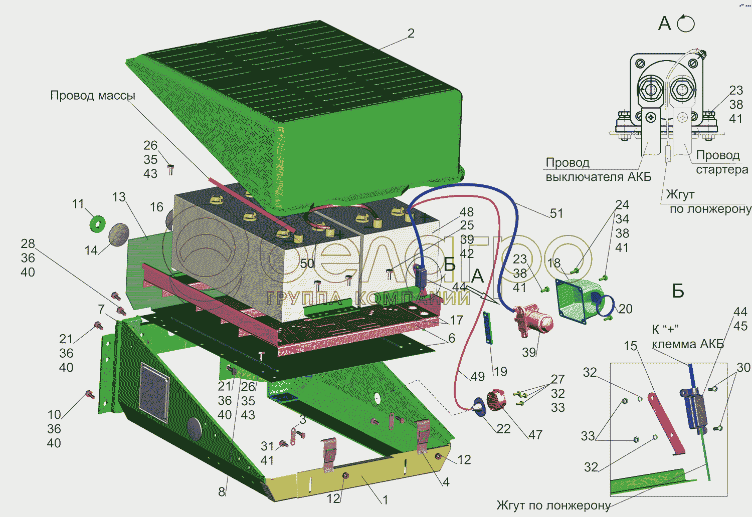 Каталог запасных частей к технике: МАЗ-5550V3 (V5). Установка аккумуляторных батарей 5440A9-3700008