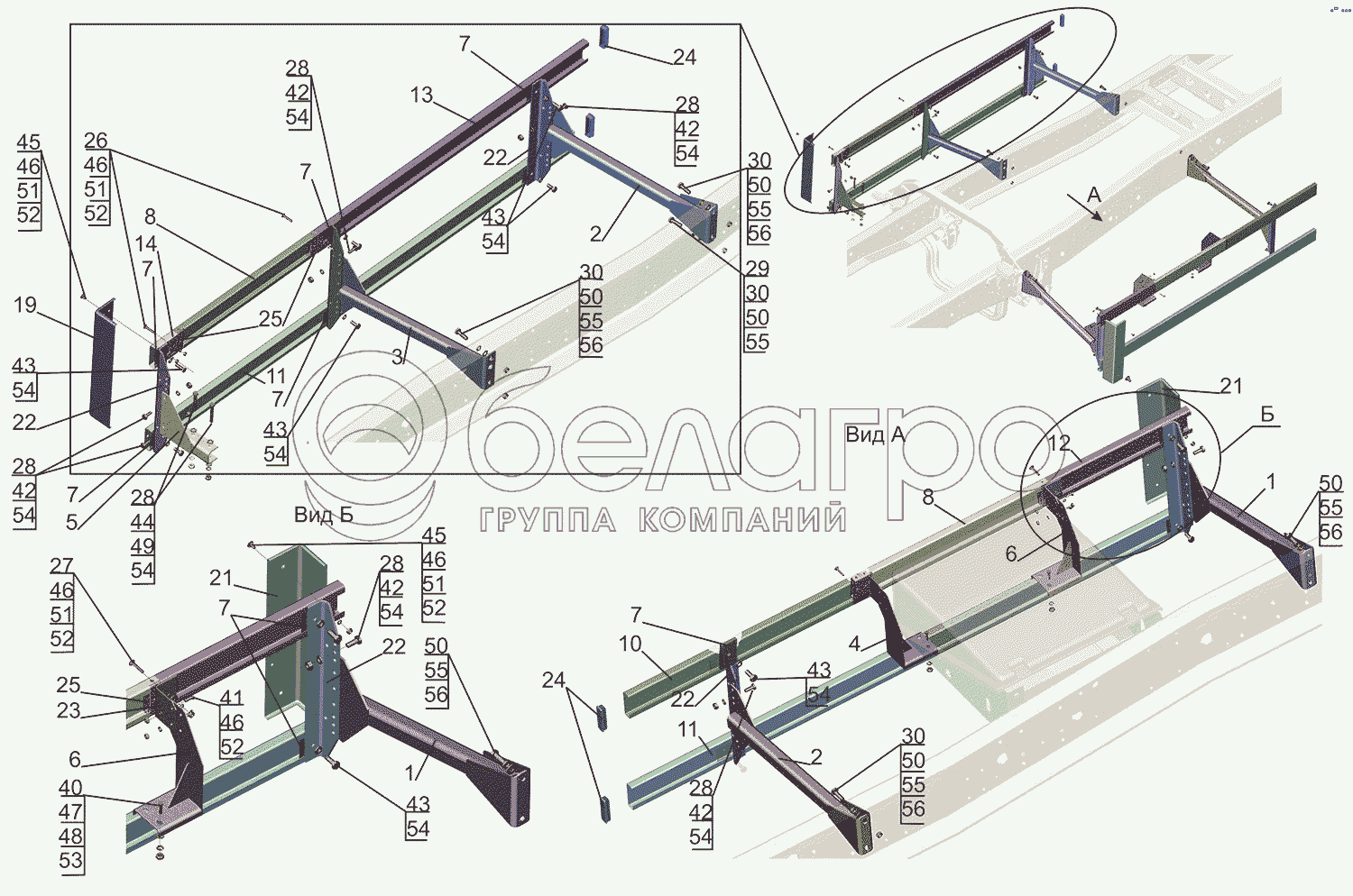 Каталог запасных частей к технике: МАЗ-5550V3 (V5). Установка бокового ограждения 5550V5-2800040-000