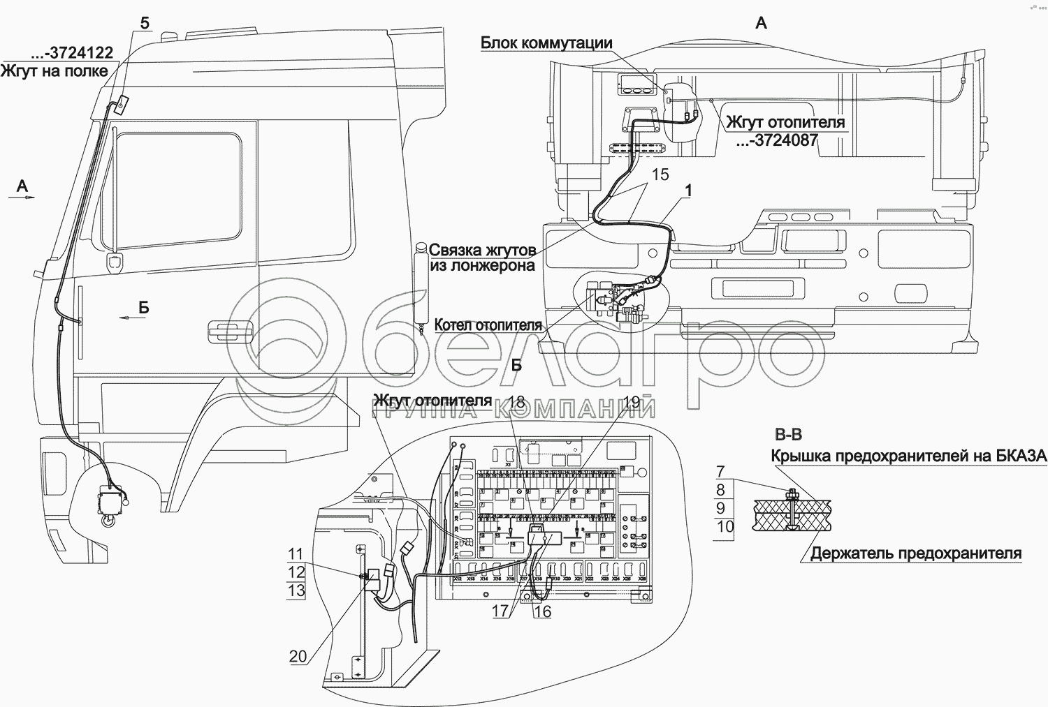 Каталог запасных частей к технике: МАЗ-5550V3 (V5). Установка электрооборудования подогревателя 544003-3700085