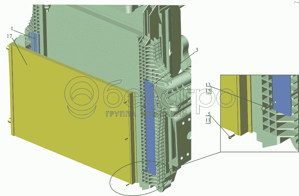 Каталог запасных частей к технике: МАЗ-5550V3 (V5). Установка конденсатора 4371V2-8100034-000